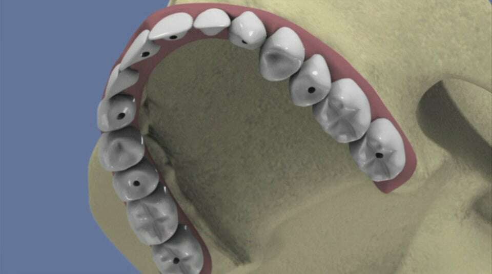 Maxillaire complet et traitement implantaire pour un bridge fixe scellé